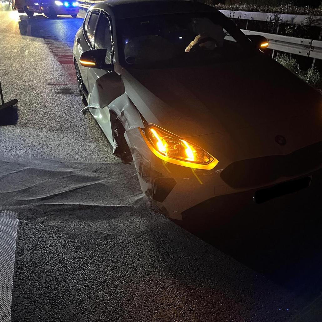 Vor Ort fanden wir zwei beteiligte Fahrzeuge vor, eines davon in der Leitplanke, das andere auf dem Standstreifen.